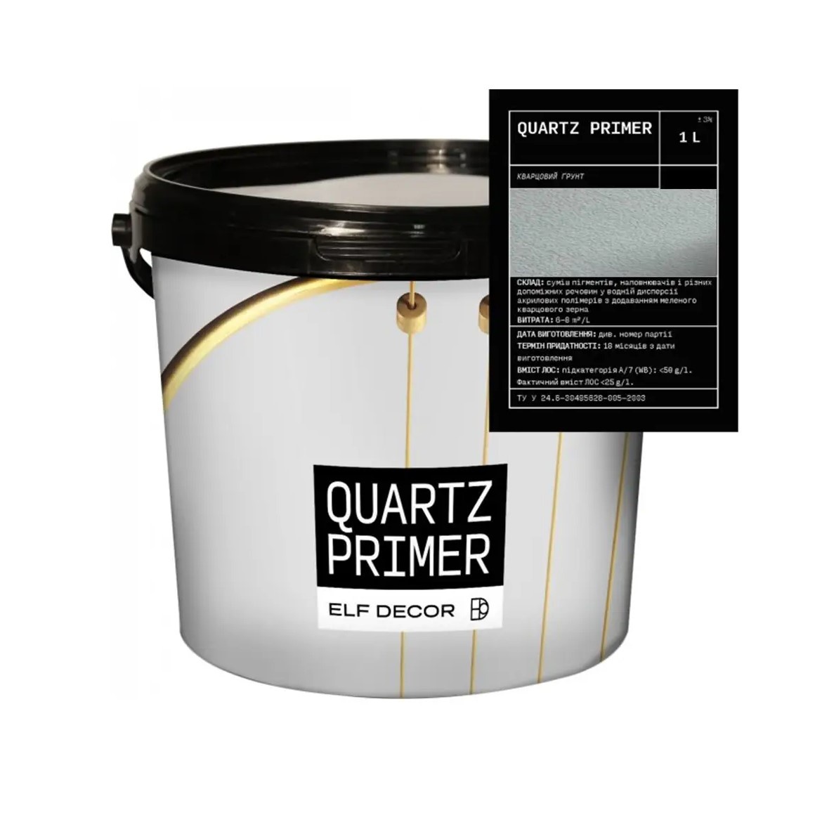 Elf Decor Quartz Primer застосовується для внутрішніх і зовнішніх робіт перед нанесенням декоративних фарб і штукатурок в якості ґрунтувального шару для поліпшення адгезії. Є сумішшю пігментів, наповнювачів і різних допоміжних речовин у водній дисперсії акрилових полімерів з додаванням меленого кварцового зерна. Наноситься на гіпсокартонні та фібро-цементні плити, бетон, цеглу, цементні та вапняно-цементні штукатурки, а також зашпатльовані поверхні.