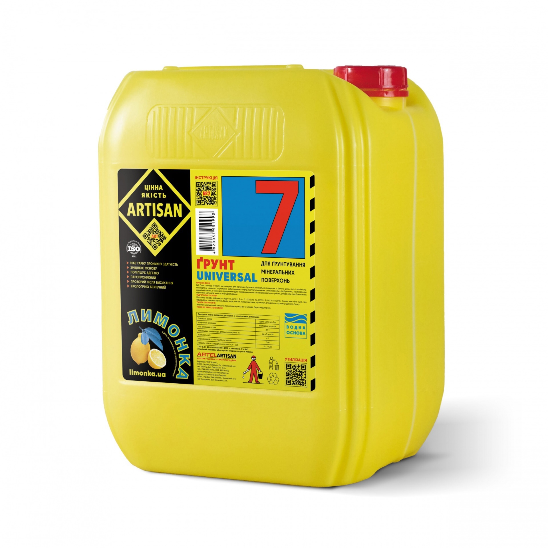 Artisan №7 Universal – це глибокопроникна ґрунтовка, призначена для підготування будь-яких мінеральних поверхонь з бетону, цегли, піно- та газобетону, гіпсокартону, цементної штукатурки, азбестоцементу перед оштукатурюванням, шпаклюванням, фарбуванням, наклеюванням керамічної плитки, а також для ґрунтування підлог перед нанесенням самовирівнюючих сумішей, укладанням оздоблювальних підлогових матеріалів зовні та всередині приміщень. Ґрунтовка сприяє зміцненню поверхні, глибоко проникаючи в основу, вирівнює поглинаючу здатність поверхні та покращує адгезію. Скорочує витрати на наступний шар покриття, підвищує експлуатаційні властивості системи оздоблення.