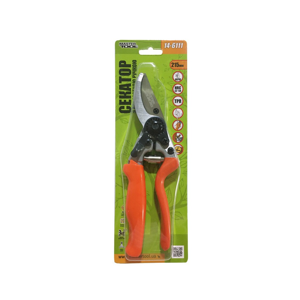 Секатор садовий MasterTool застосовується для обрізки кущів, тонких гілок і пагонів, при формуванні та проріджування крони дерев, чагарників, також використовуються при зборі винограду. Виготовлений з високоякісної сталі. Має механізм зворотної пружини, що істотно прискорює роботу з дрібними гілками. При транспортуванні передбачена функція блокування лез.
