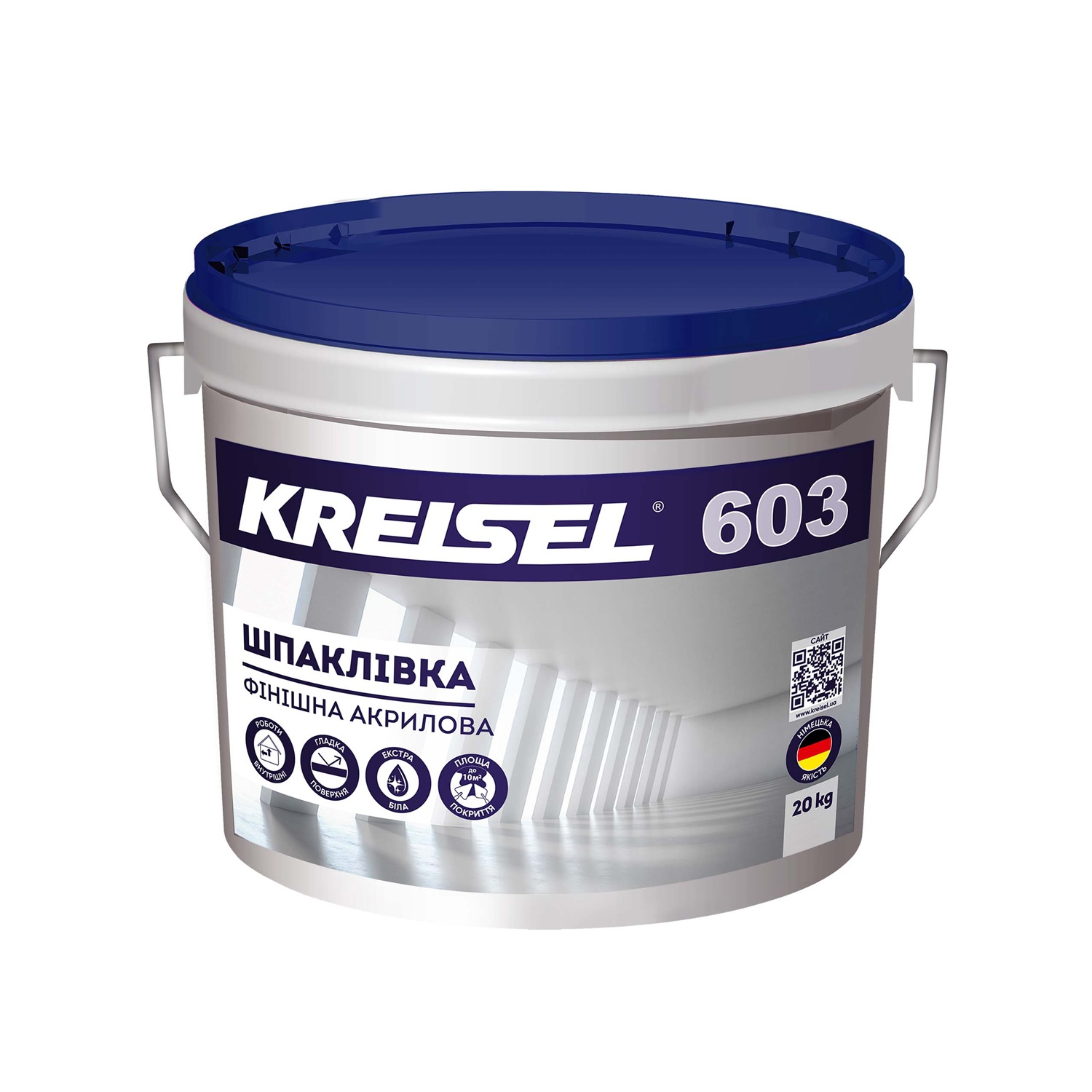 Kreisel 603 – це екстра біла фінішна шпаклівка призначена для вирівнювання поверхонь всередині будівель. Застосовується для оздоблювальних, декоративних і ремонтних робіт. При використанні матеріалу можна отримати ідеально гладку сніжно-білу поверхню стін і стель, завдяки чому зменшується витрата фарби під час фарбування.