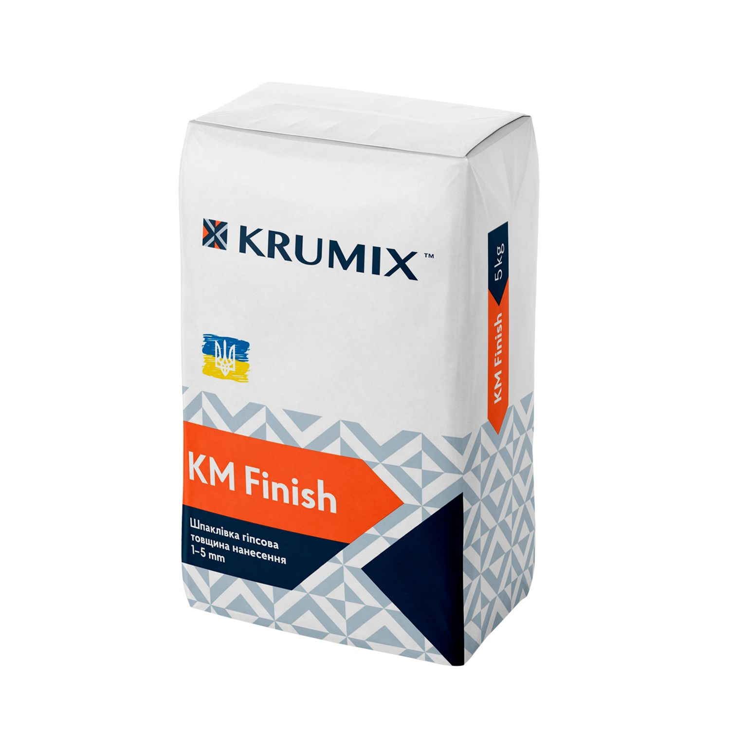 Шпаклівка гіпсова KM Finish – це суха шпаклювальнасуміш на основі гіпсового в’яжучого та спеціальнихдобавок.