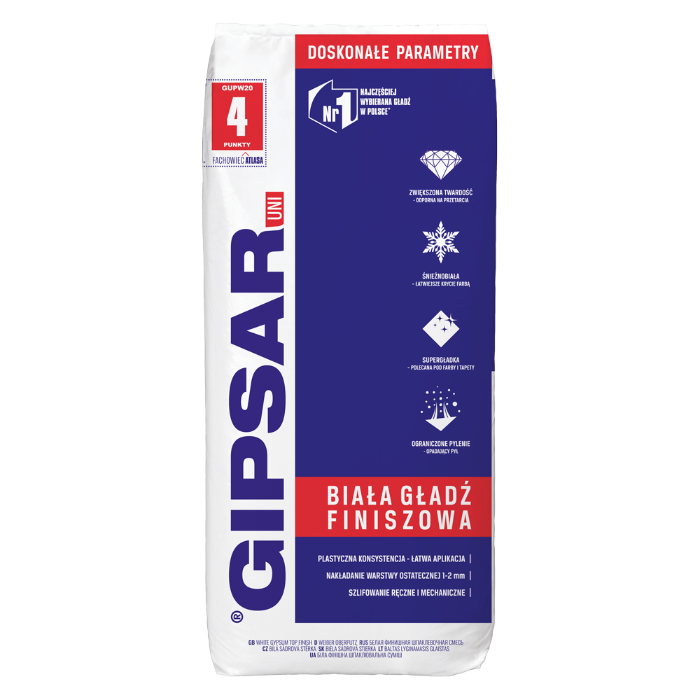 Шпаклівка Atlas Gipsar Uni - біла шпаклювальна суміш Finish.