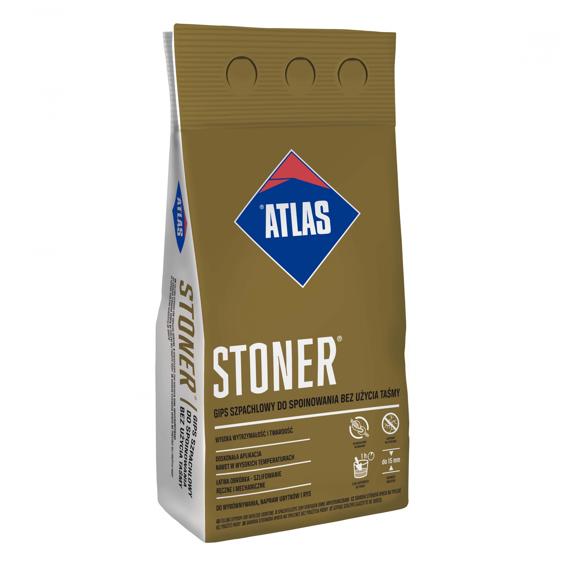 - ATLAS STONER виробляється у вигляді сухої суміші на основі гіпсу сорту альфа, мінеральних заповнювачів та добавок, що модифікують.