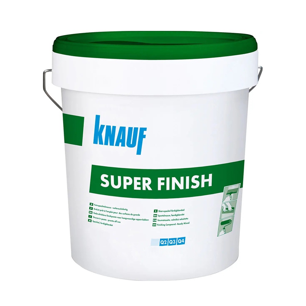 Knauf SuperFinish - готова шпаклювальна суміш на основі доломіту і вінілового в'яжучого, із спеціальними добавками, що поліпшують властивості шпаклівки. Відповідає вимогам EN 13963 і придатна для використання в житловому, цивільному та промисловому будівництві. Шпаклівка використовується для вирівнювання різних мінеральних поверхонь, заповнення западин і тріщин (бетон, штукатурки, цегляні кладки), для закладення швів гіпсокартону за допомогою сполучних стрічок, обробки кутів, ламінування, а також приклеювання щитів один до одного.