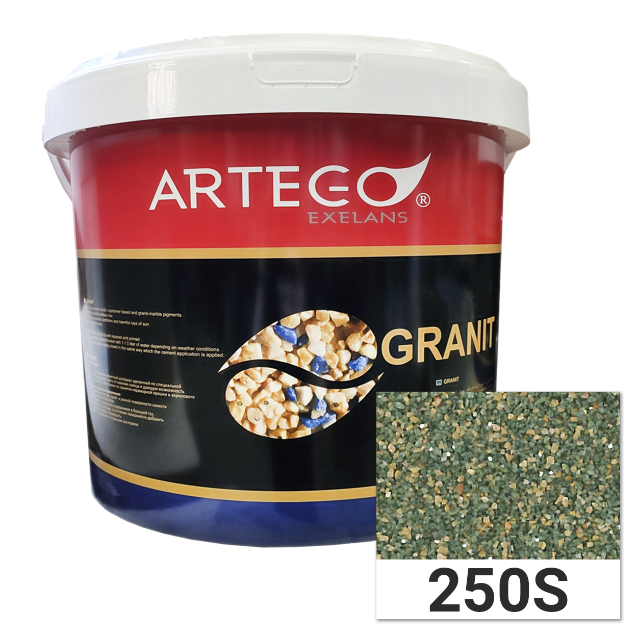 Artego Granit – це композиційне декоративне покриття на основі натуральної нефарбованої гранітно-мармурової крихти різних кольорів і акрилового полімеру.