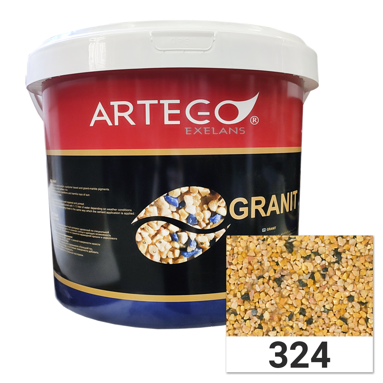 Artego Granit – це композиційне декоративне покриття на основі натуральної нефарбованої гранітно-мармурової крихти різних кольорів і акрилового полімеру.
