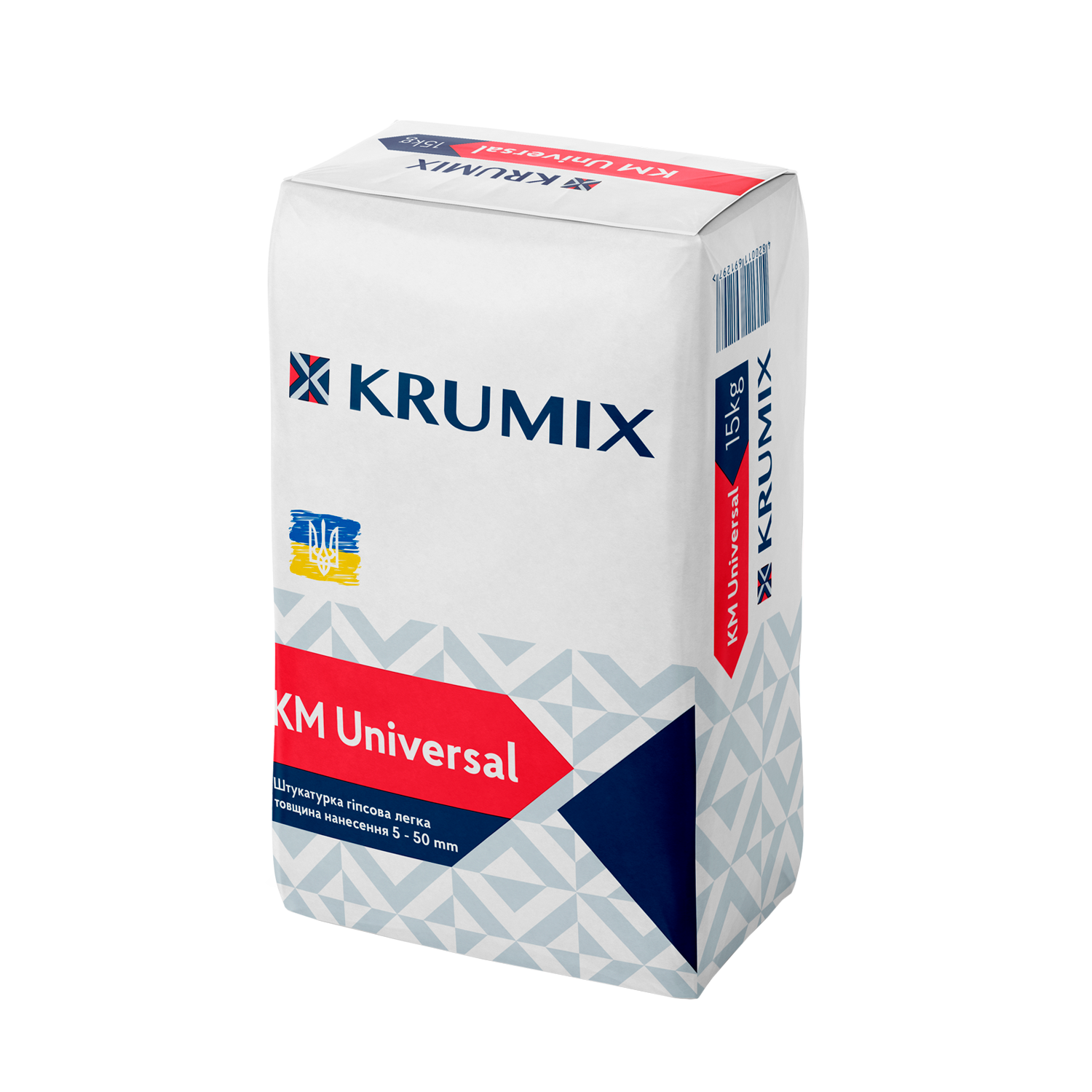 Штукатурка гіпсова легка КМ Universal – це суха штукатурна суміш на основі гіпсового в’яжучого, легкогозаповнювача та спеціальних добавок. Суміш є універсальною для всіх типів поверхонь завдяки особливимадгезійним властивостям.