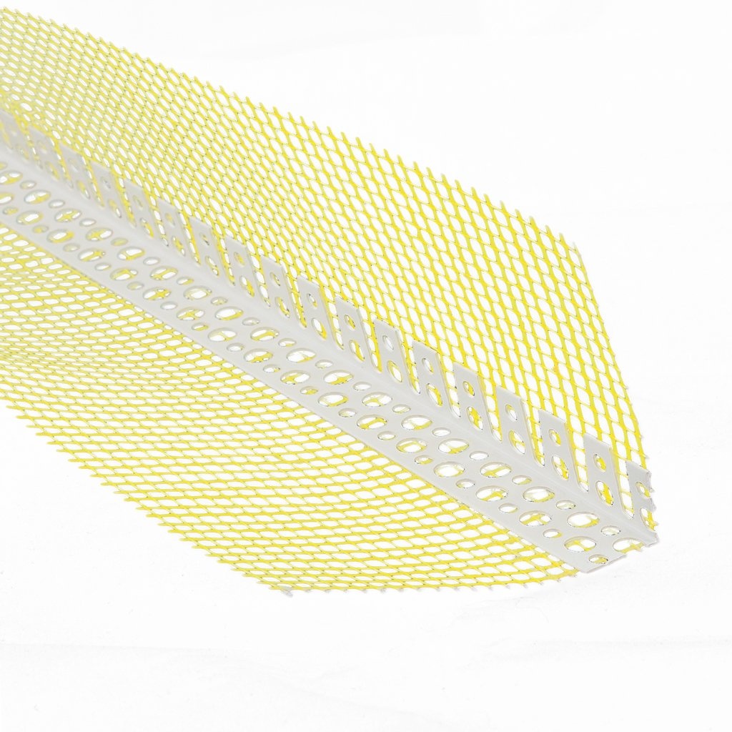 Кутовий пластиковий профіль, обклеєний склосіткою, призначений для захисту кутів будинків від пошкоджень. Поперечний переріз перфорованого кутника виконаноу формі прямого кута, що забезпечує при монтажі щільне прилягання до поверхні. Профіль має перфорацію і при установці в отвори проникає шпаклівка, що дозволяє забезпечити міцне зчеплення профілю з супутньою поверхнею гіпсокартону або стіни. Використання таких кутників значно полегшує будівельні роботи, зменшує витрати часу при монтажі теплоізоляційних плит і виведенні кутів фасадних систем “Мокрим методом”.