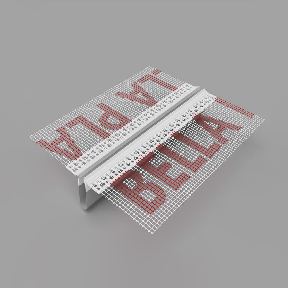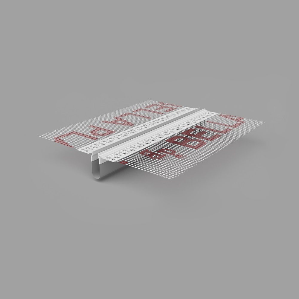 Профіль складається з двох білих кутників, сірої розширювальної ПВХ мембрани, а також сітки зі скловолокна.