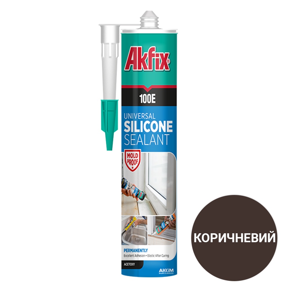 Akfix 100Е - це однокомпонентний, готовий до вживання, силіконовий герметик, що твердіє під впливом вологості повітря. Має прекрасні адгезивні властивості до різного типу не пористих поверхонь - метал, дерево, кераміка, скло, емалі, пофарбовані поверхні тощо. Використовується під час робіт зі скління та ізоляції, герметизації дверей, вікон, сантехнічного обладнання, телефонного та електричного обладнання. Підходить для застосування в побуті. Не рекомендується наносити герметик на чутливі метали (мідь, латунь, деякі види алюмінію, свинець) і дзеркала, під час виробництва і герметизації акваріумів. Так само не варто фарбувати та наражати тривалому впливу сонячних променів. Не використоввувати для для бетону, мармуру, граніту або каменю.