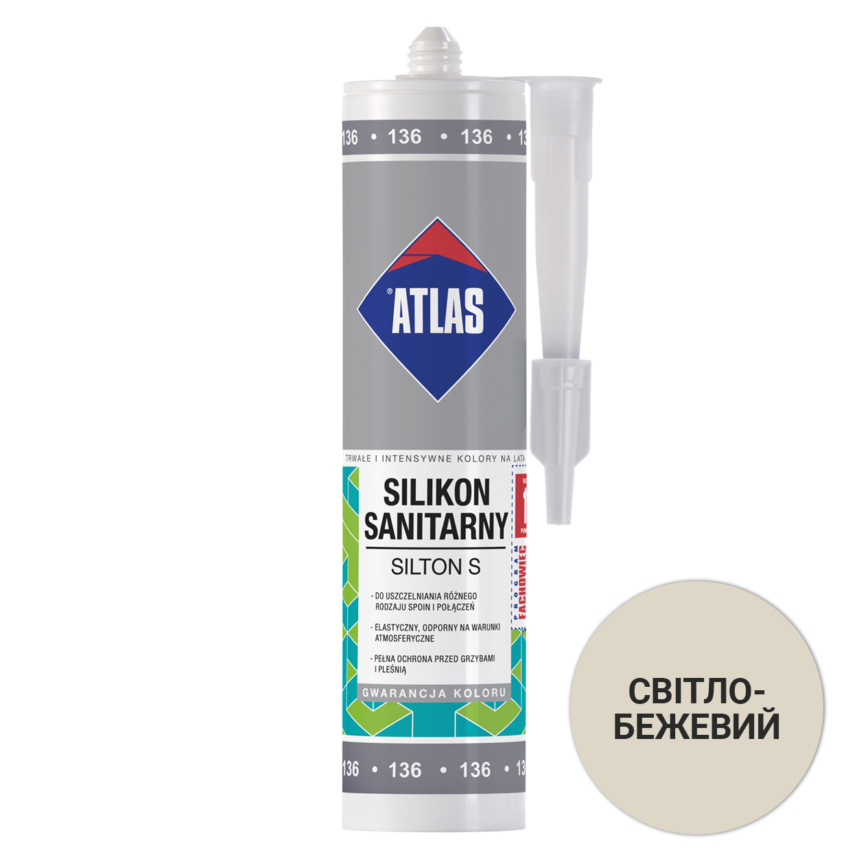 Atlas Silton S - санітарний силікон, який завдяки своїм властивостям, широко використовується в житловому і промисловому будівництві. Застосовується всередині і зовні будинків, у ванних приміщеннях, кухнях, лазнях, коридорах, сходах, на балконах, терасах, фасадах. Рекомендується для заповнення щілин між покриттям і обладнанням приміщення, заповнення розширювальних швів. Слугує для затирання керамічних, гресових і клінкерних плиток, санітарної кераміки, імпрегнованного дерева, скла, порцеляни, нержавіючої сталі, емальованих поверхонь, тощо.