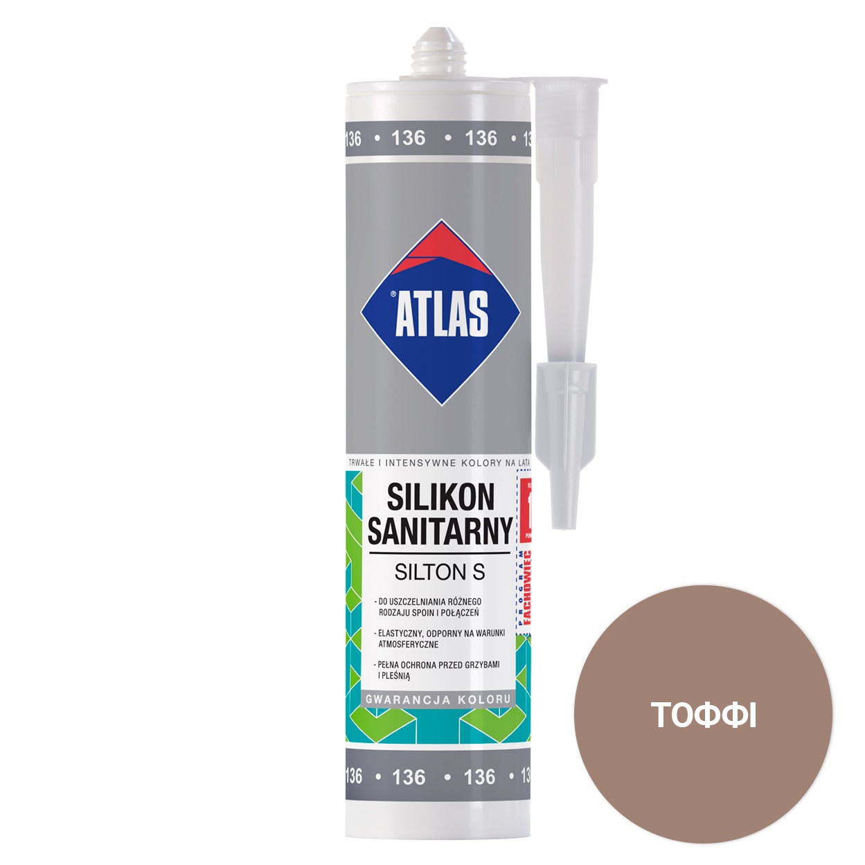 Atlas Silton S - санітарний силікон, який завдяки своїм властивостям, широко використовується в житловому і промисловому будівництві. Застосовується всередині і зовні будинків, у ванних приміщеннях, кухнях, лазнях, коридорах, сходах, на балконах, терасах, фасадах. Рекомендується для заповнення щілин між покриттям і обладнанням приміщення, заповнення розширювальних швів. Слугує для затирання керамічних, гресових і клінкерних плиток, санітарної кераміки, імпрегнованного дерева, скла, порцеляни, нержавіючої сталі, емальованих поверхонь, тощо.