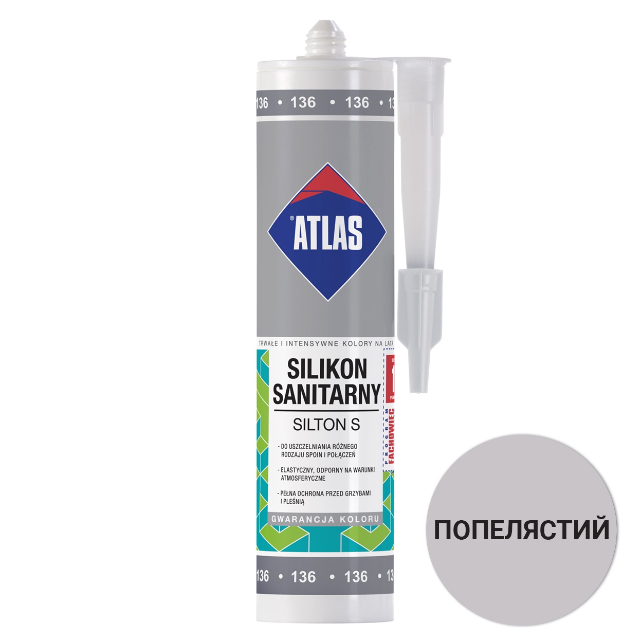 Atlas Silton S - санітарний силікон, який завдяки своїм властивостям, широко використовується в житловому і промисловому будівництві. Застосовується всередині і зовні будинків, у ванних приміщеннях, кухнях, лазнях, коридорах, сходах, на балконах, терасах, фасадах. Рекомендується для заповнення щілин між покриттям і обладнанням приміщення, заповнення розширювальних швів. Слугує для затирання керамічних, гресових і клінкерних плиток, санітарної кераміки, імпрегнованного дерева, скла, порцеляни, нержавіючої сталі, емальованих поверхонь, тощо.
