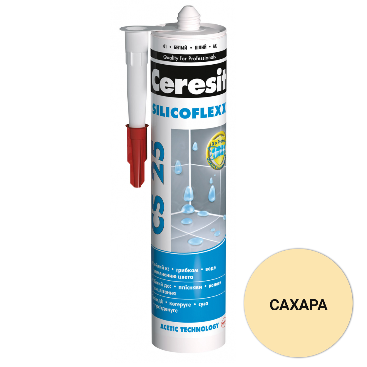 Ceresit CS 25 - це герметик на основі силікону та оцтової кислоти, призначений для заповнення кутових швів з плитки будь-якого виду, крім мармурової, для заповнення і герметизації примикань сантехнічного обладнання в ванних кімнатах, душових кабінах, санвузлах, кухнях та інших приміщеннях з вологим середовищем. Має хороше зчеплення з керамічними плитками, емальованими поверхнями, фарфором і склом.