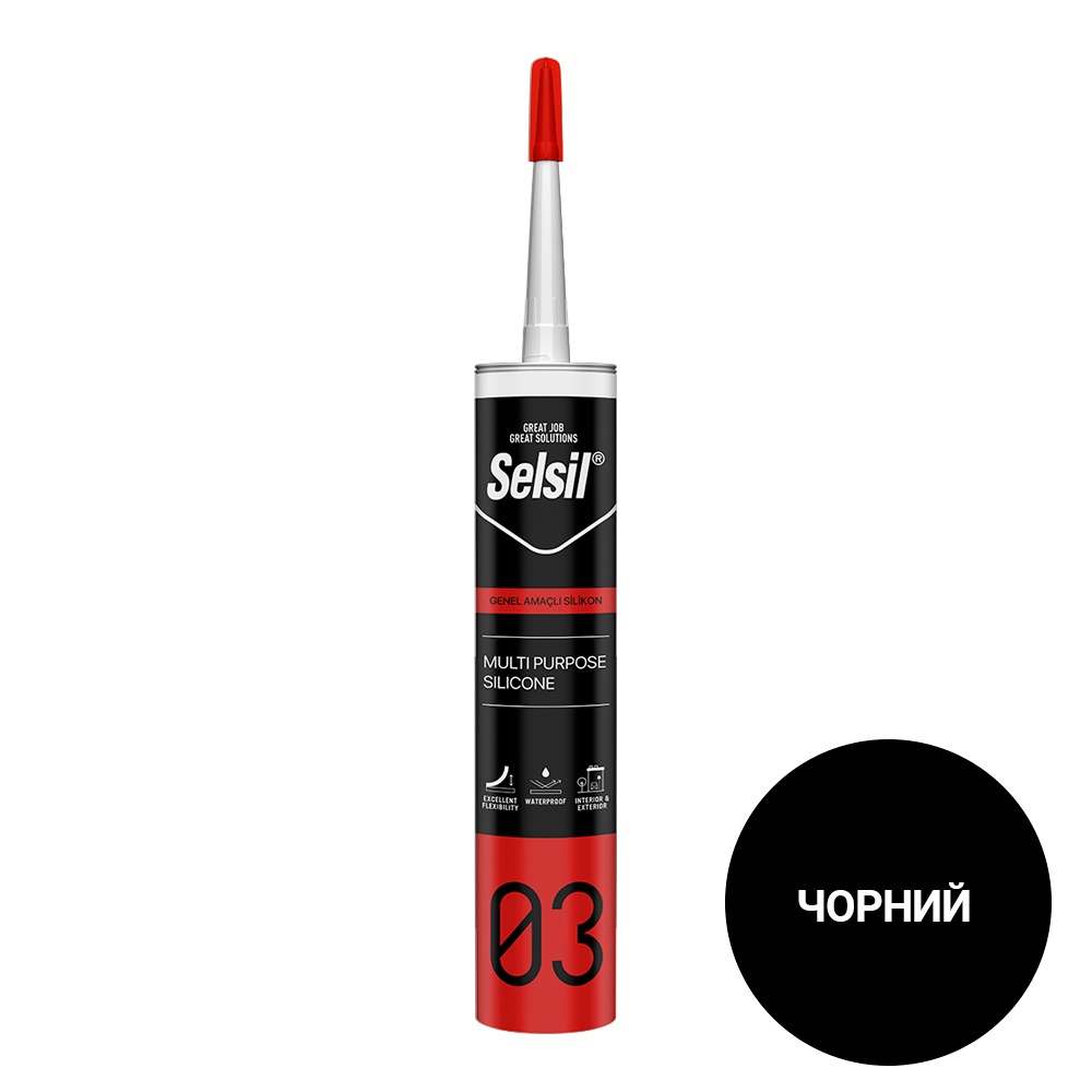 Selsil 03 Multi Purpose Silicone - багатоцільовий герметик наоснові силікону та оцтової кислоти. Має дуже міцну адгезію, тому його можна використовувати на більшості звичайних непористих поверхнях.