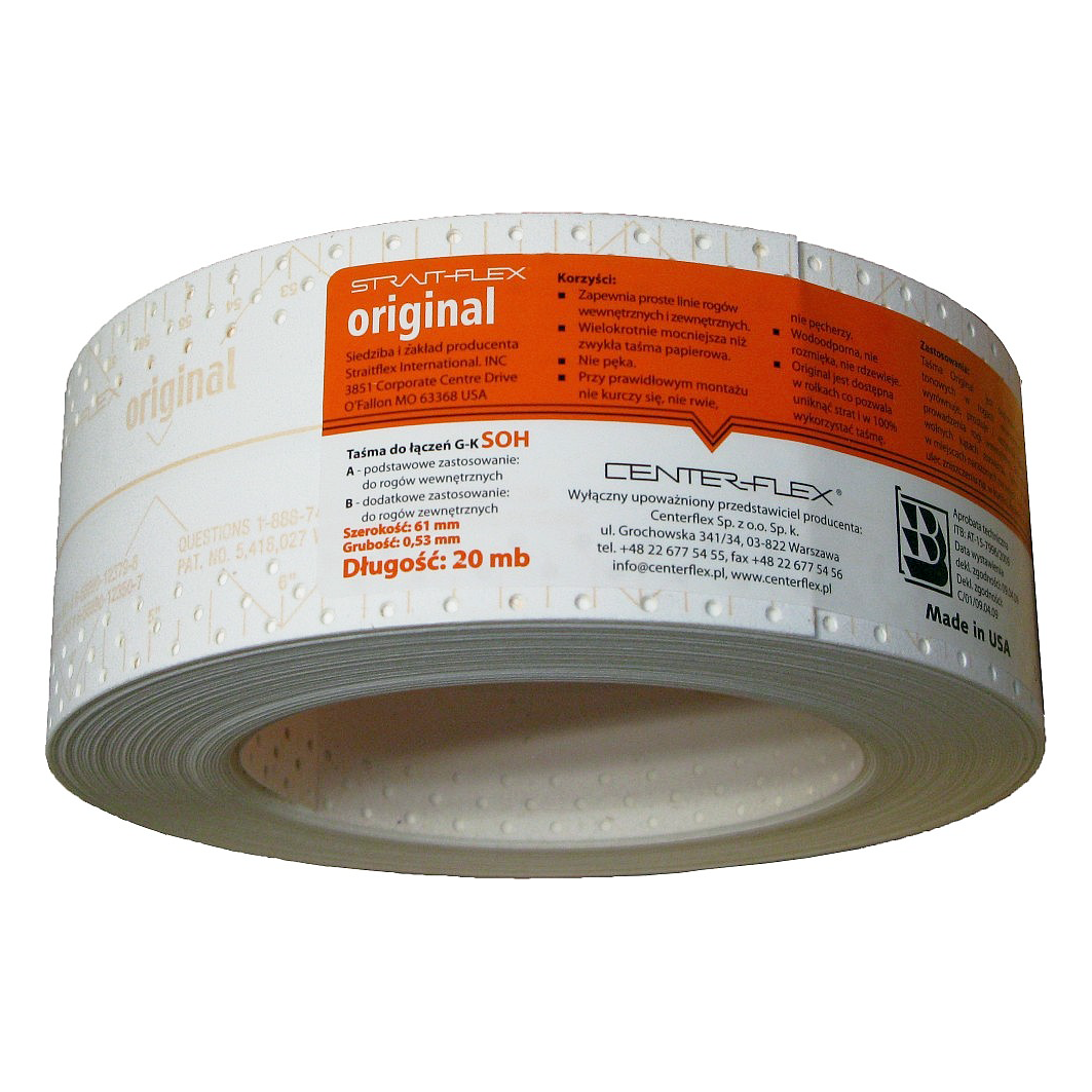 Нейлонова перфорована стрічка Strait-Flex Original – це іноваційна армована стрічка, виготовлена з композитного нейлону. Вона у кілька разів міцніша ніж паперова стрічка, скловолокно та серпянка; не руйнується та не розвалюється під час шліфування та монтажу.
