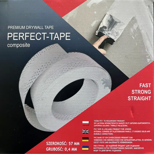 Стрічка Perfect-TAPE — надійний продукт для з'єднання внутрішніх кутів та швів гіпсокартонних плит. Стрічка має ширину 57 мм, що забезпечує надійне та довговічне з’єднання. Довжина становить 30 метрів, що дозволяє широко застосовувати.