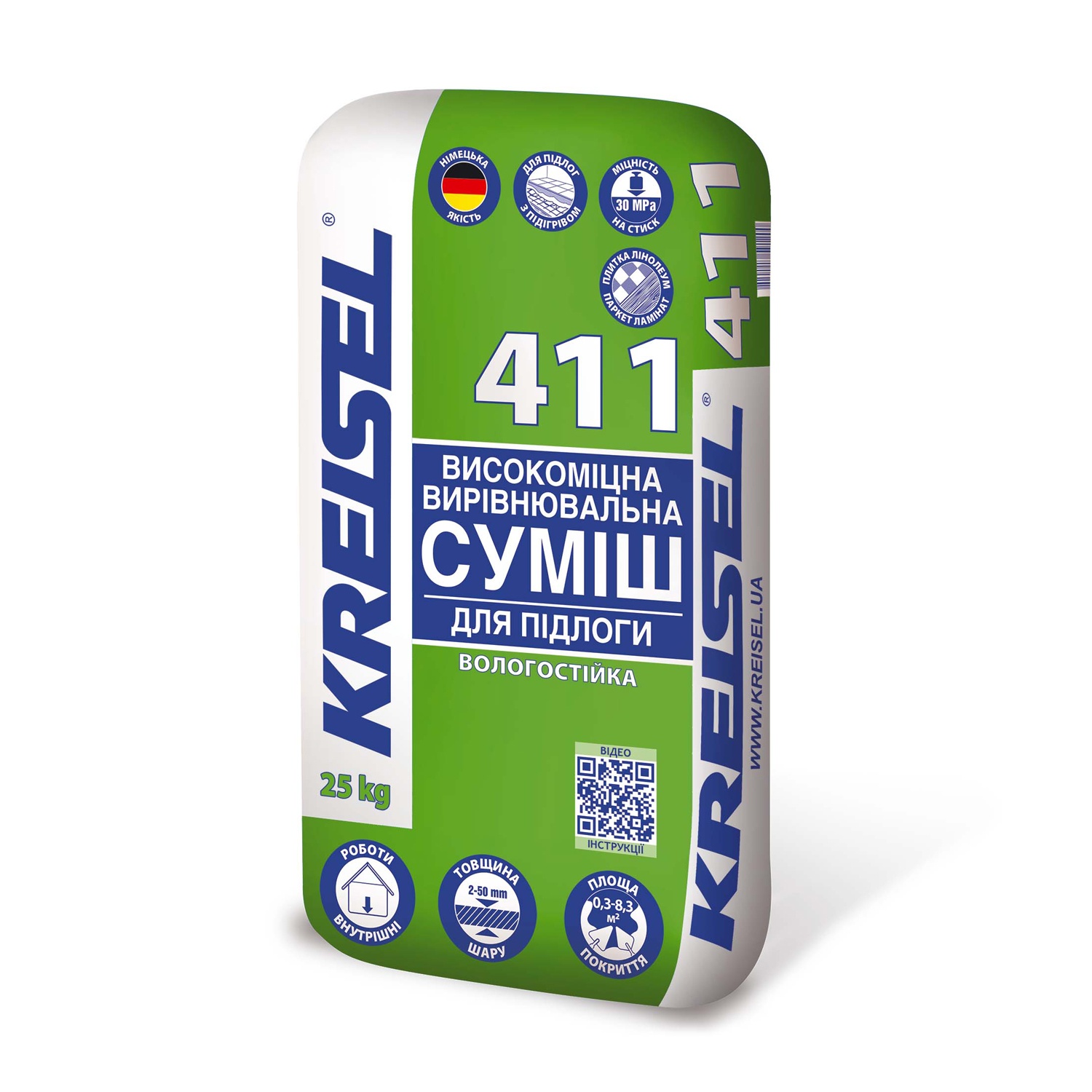 Kreisel 411 – суміш призначена для ручного або механічного нанесення вирівнюючого і гладкого шару на підлогові покриття всередині приміщень.