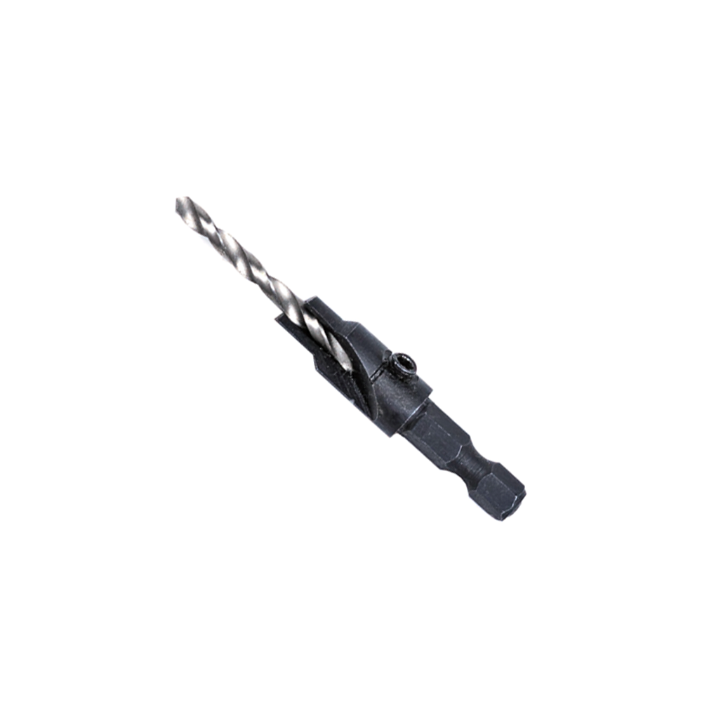 Свердло з циліндричним хвостовиком, “М” подібним загостренням в поєднанні з зенкувальною втулкою, закріпленою єврогвинтом (ключ у комплекті).