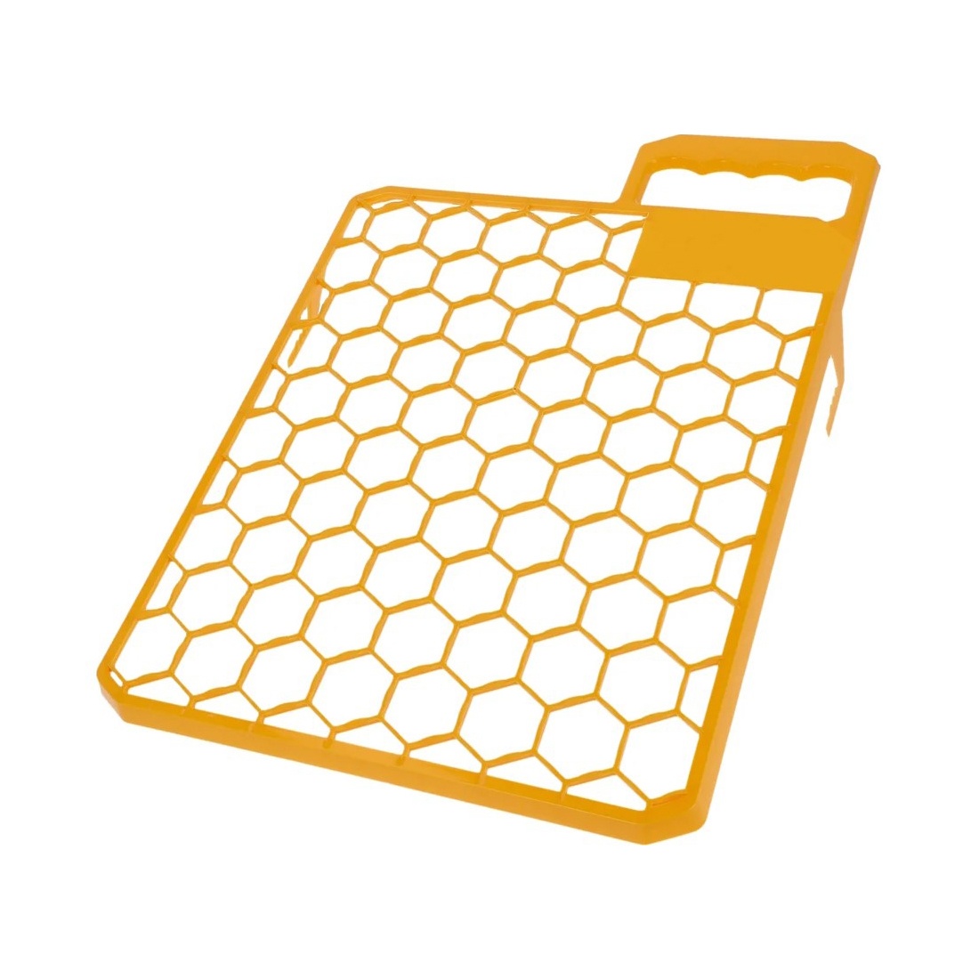 Віджимна решітка виконана з міцного пластику, завдяки чому інструмент прослужить довго. Решітка передбачає ручку для зручнішого зберігання. Спеціальні клямки дозволяють помістити малярну решітку на відро з фарбою та зафіксувати.