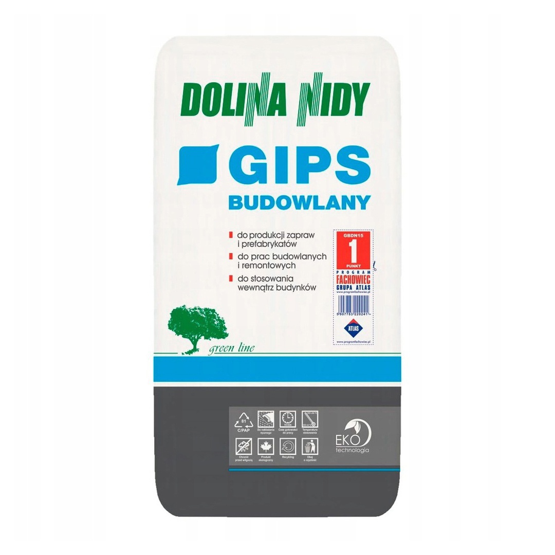 Гіпс будівельний Dolina Nidy є гіпсовим сполучним, отриманим в результаті часткової дегідратації та подрібнення натурального гіпсу.
